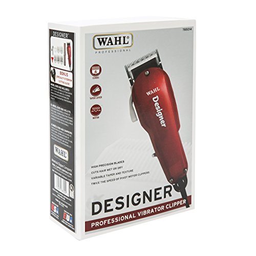 -. Feature : PROFESSIONAL PRECISION: From Wahl Professional's commercial grade line of products, the Designer Clipper is intended for professional use only and is designed to deliver the sharp performance that experts demand. / STYLISH AND FUNCTIONAL: The Designer Clipper is our #1 selling clipper for a reason. It has an ergonomic design for comfort and control, high precision blades, a powerful electromagnetic motor, and an adjustable lever for easy blending and fading. It can cut all types of hair both wet and dry and is available to barbers and stylists of all expertise levels. / ACCESSORIES INCLUDED: For your convenience, the Designer Clipper comes with all accessories required for use. Package includes the clipper, (6) attachment combs, oil, cleaning brush, instructions, and red blade guard. / PRODUCT SPECIFICATIONS: The Designer Clipper (#8355-400) measures 6.25" long and weighs 1 lb. This product features a 1005 universal precision blade, an 8 foot professional-grade, chemical resistant power cord, a standard electromagnetic motor, and operates at 120 volts/60 hertz. For sale in the USA only. / PLEASE NOTE: Wahl Professional Products purchased from this authorized dealer feature a manufacturer's warranty, which is not available from unauthorized dealers.