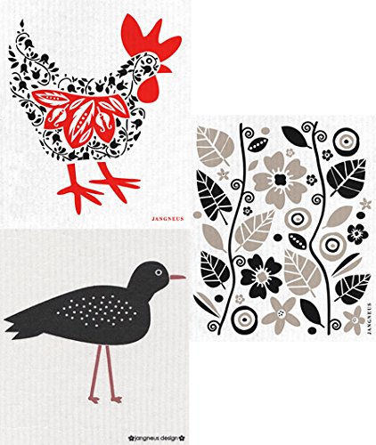-. Feature : Contemporary Swedish Dish Cloths - Includes 3 / All natural materials: 70% Cellulose & 30% Cotton / Designed in Sweden by Marie Jangneus and made in UK with water based inks / Reusable & 100% biodegradable; Approx 6.75 x 8 inches / Absorbs an amazing 15 times its own weight in water