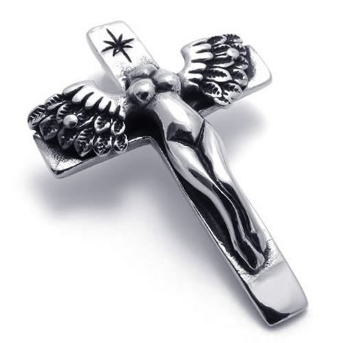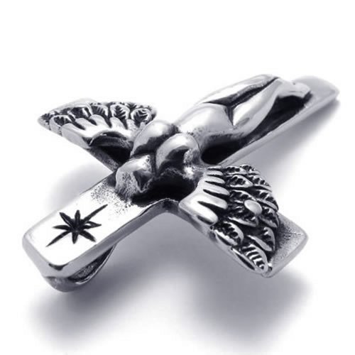 -. Title : KONOV Stainless Steel Angel Wing Cross Mens Womens Pendant Necklace, 24 inch Chain