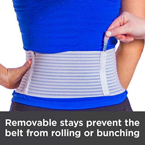 - The stays located on both sides of the belt make sure the brace doesn't roll down or bunch up while you're wearing it but can be removed if you choose.