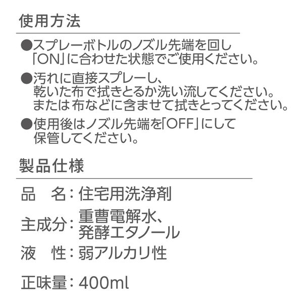 ●レンジ・冷蔵庫など、洗剤を使いたくない場所のベタベタ汚れを浮かせて落とすレンジ・冷蔵庫用スプレー。