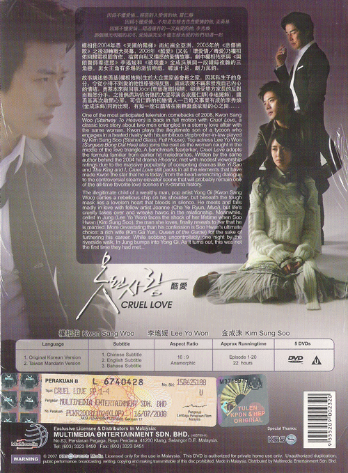 One of the most anticipated television comebacks of 2008, Kwon Sang Woo (Stairway To Heaven) is back in full motion with Bad Love, a classic love story about two men entangled in a stormy love affair with the same woman. Kwon plays the illegitimate son of a tycoon who engages in a heated rivalry with his ambitious stepbrother-in-law played by Kim Sung Soo (Stained Glass, Full House).