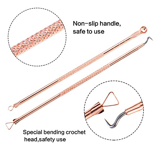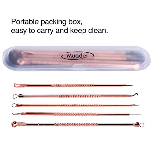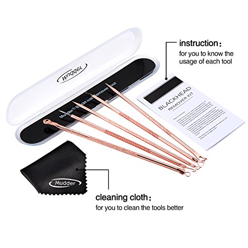 -. Title : Mudder Blackhead Remover Kit, Pimple Comedone Extractor Tool Whitehead Popping Acne Removal Kit, Anti-microbial Double-side 5 Pieces with Cleaning Cloth (Rose Gold)