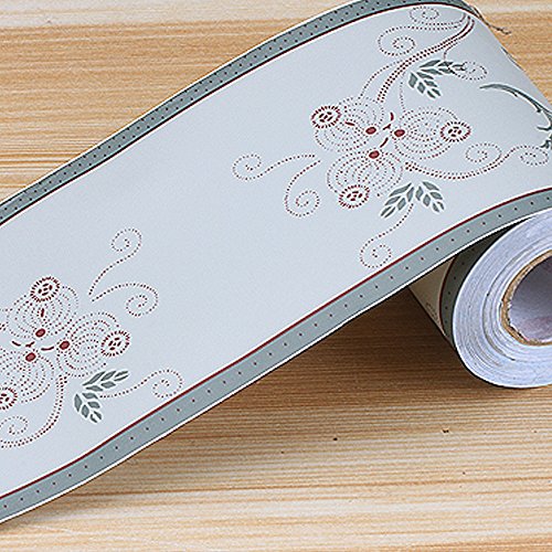 SimpleLife4U Grey Vine Wallpaper Border Self-Adhesive PVC Wall Covering Borders Bathroom Kitchen Tiles Decor Sticker