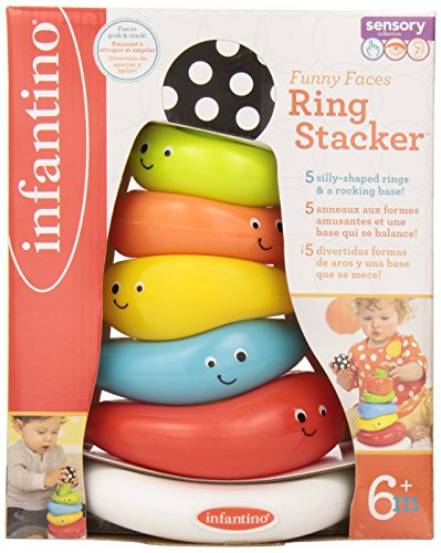 With 5 uniquely-shaped rings and a rocking base, this colorful stacker is perfect for boosting hand-eye coordination and motor skills.