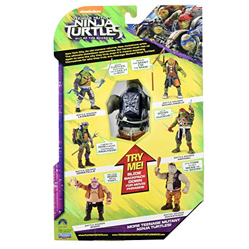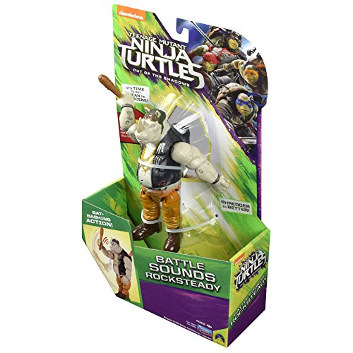 -. Binding : Toy -. Brand : Teenage Mutant Ninja Turtles -. EAN : 0043377883074 -. Feature : Rock steady is ready to Rumble, and this Mutant Rhino is going to be tough for the Turtles to handle! / Press down on Leonardo's backpack to swing his Club and speak lines from the movie! / With 10 phrases and sounds! / 6", fully poseable figure from the movie teenage Mutant Ninja Turtles: out of the shadows from Paramount pictures. -. IsAdultProduct : 0 -. Label : Playmates - Toys -. Manufacturer : Playmates - Toys -. Model : 88307 -. MPN : 88307 -. PackageQuantity : 1 -. PartNumber : 88307 -. ProductGroup : Toy -. ProductTypeName : TOYS_AND_GAMES -. Publisher : Playmates - Toys -. ReleaseDate : 2016-04-10 -. Studio : Playmates - Toys -. Title : Teenage Mutant Ninja Turtles Movie 2 Out Of The Shadows Rocksteady Deluxe Figure -. UPC : 043377883074 -. Warranty : No Warranty
