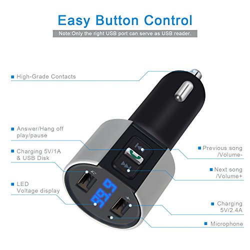1. BROAD COMPATIBILITY - AGPtek® universal fm radio transmitter is well compatible with most Bluetooth enabled devices, like iPhone, iPad, iPod, Tablet, Smartphones or MP3, MP4 Players.