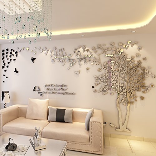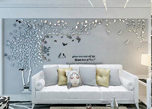 -. Title : N.SunForest 3D Crystal Acrylic Couple Tree Wall Stickers Silver Self-adhesive DIY Wall Murals Home Decor Art