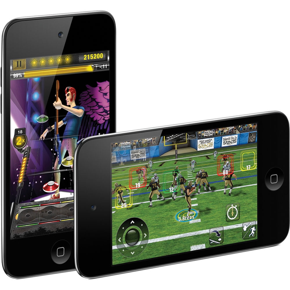 Color: Silver/Black 4th Generation Supports iOS 6 16 GB flash memory Holds up to 14,000 songs in 128 Kbps AAC format Holds up to 80,000 iPod-viewable photos Holds up to 80 hours of video 3.5-inch widescreen Multi-Touch Retina display (960 x 640 resolution @ 326 pixels per inch) Wi-Fi 802.11b/g/n wireless LAN (802.11n 2.4GHz only) - check email, download media, Google Maps, and more! Nike + iPod support built-in Bluetooth 2.1 + EDR Maps location-based service Built-in speaker and microphone Built-in front facing camera for FaceTime Built-in HD Video camera Built-in rechargeable lithium-ion battery Music playback time: up to 40 hours when fully charged Video playback time: up to 7 hours when fully charged Arsenic-free display glass BFR-free Mercury-free LED-backlit display PVC-free Highly recyclable stainless steel enclosureCameras, photos, and video Specifications: Video recording, HD (720p) up to 30 frames per second with audio; still photos (960 x 720) with back camera VGA-quality photos and video up to 30 frames per second with the front camera Tap to control exposure for video or stills Photo and video geo tagging over Wi-Fi I/O Ports: Dock connector 3.5 mm stereo headphone jackUnit Dimensions: 4.3 x 2.4 x 0.33-inches (H x W x D, approximate) Weight: 4.05 ouncesPackage Includes: Apple iPod touch 16 GB (4th generation) Wi-Fi Media Player AC USB power adapter USB cable Stereo earbuds Refurbished Grade B with 90 day warranty: Item is in very good working condition, has minor cosmetic blemishes, examples of which are (but not limited to): Scratches on back of casing, Hairline scratches on along borders of screen