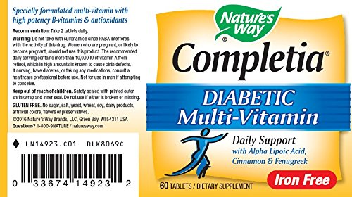 Product DescriptionNature's Way Completia Diabetic Multivitamin is an iron free formula specially designed for those with diabetes.0