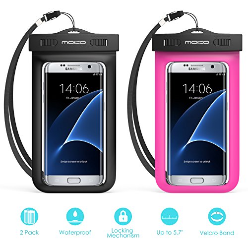 Waterproof Case, MoKo Universal Waterproof Case With Armband & Neck Strap for iPhone SE / 6s Plus / 6 Plus / 6s / 6 / 5s, Galaxy S7 / S7 Edge, Also fits devices up to 5.7 inch - IPX8 Certified, BLACK