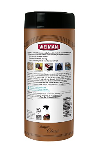Weiman leather wipes were designed to clean, condition and protect leather. Six natural oils rejuvenate, moisturize and restore leather, while the uvx-15 sunscreen protects it from the damaging effects of the sun. Weiman leather wipes are remoistened and can be applied directly onto smooth, finished leather surfaces.