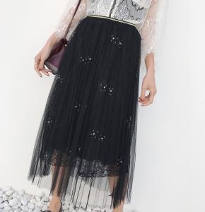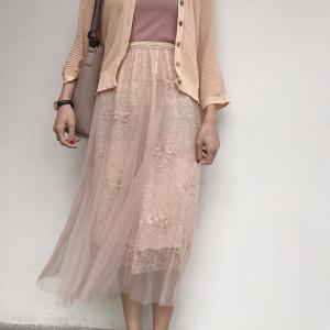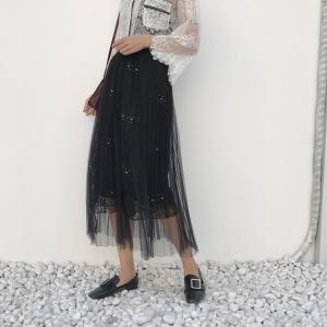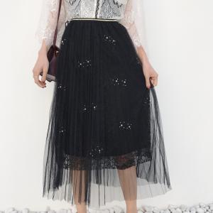 レーススカート 春夏 チュール プリーツスカート フラワー刺繍 総レース 上品 華やか フェミニン ロング丈
