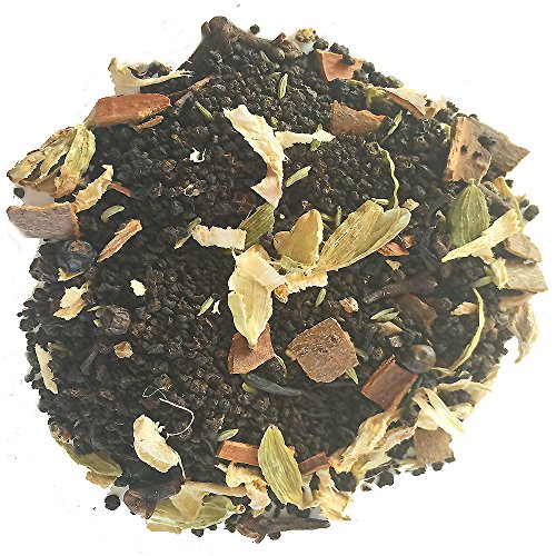 -. Feature : Hand sliced and dehydrated fresh organic ginger, not powdered. Handcrafted in the U.S. with organic ingredients. (1.5 oz.) / Exotic, full-bodied, rich gourmet flavor of India. Natural soothing herbal formula, vegan, nothing artificial / Enjoy the sensual pleasure of the great tea houses of the world in your own teacup / Aromatic, delicious, anti-inflammatory and nourishing / Ingredients: Orange Pekoe Black Tea, Ginger, Cloves, Cardamom, Cinnamon, Fennel, Black Pepper, Vanilla