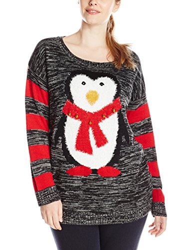 Drop-shoulder sweater in marled knit featuring fuzzy penguin design with bell-accented scarf Striped sleeves and back Ribbed-knit trim at neck, cuffs, and hem Brand : Derek Heart Item model num : MTXP059 EAN : 0829826158432 Product Dimensions(LxWxH) :