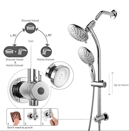LORDEAR Commercial Flexible 5 Functions Double Rain Hotel Spa Dual Bathroom Shower Heads Handheld Combo,Polished Chrome Shower Set with Adjustable Slide Bar and Stainless Steel Hose