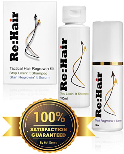 - INFUSED WITH DHT BLOCKERS AND NUTRIENTS, the Tactical Hair Regrowth Kit contains two products – our “Stop Losin’ It” Hair Loss Prevention Shampoo and our “Start Regrowin’ It Hair Regrowth Serum. Combined with our Re: Hair, “Hair, Skin & Nail Inspiration” hair vitamins, we give you a powerful counter attack to DHT, the biggest cause of hair loss and male (and female) pattern baldness.