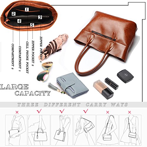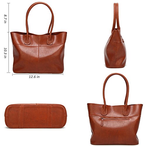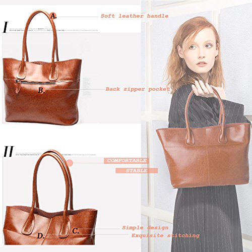 -. Feature : MATERIAL: High Quality Greased Leather CLOSURE: Top Zipper Closure / DIMENSIONS: 12.6"L x 10.3"H x 4.7"W, Handle Drop: 8.6 in / KEEP YOUR STUFF ORGANIZED: It is large capacity,it has 6 Pockets(2* Main Compartments,1* Back Zipper Pocket,1* Interior Zipper Pocket,2 Interior Open Pockets) / CLASSIC SIMPLE DESIGN: Solid Color Retro Greased Leather,the design is simple but classic---it is easy to match any style; Zip-pockets in Middle & Back---You can put your cards on cell phone in, it is more conveninet;Detachable Shoulder Strap---You can use it as a cross body bag/laptop bag/diaper bag when you have no free handbags to carry. / YNIQUE BRANDED BAG:This item is ON SALES in promotion,we believe that high quality products with affordable P.R.Ice is the best advertisement,if you need a handbag, don't miss it!!!It is a brgain.