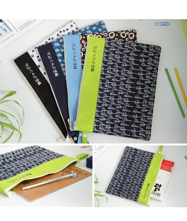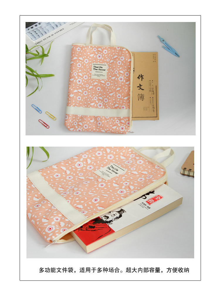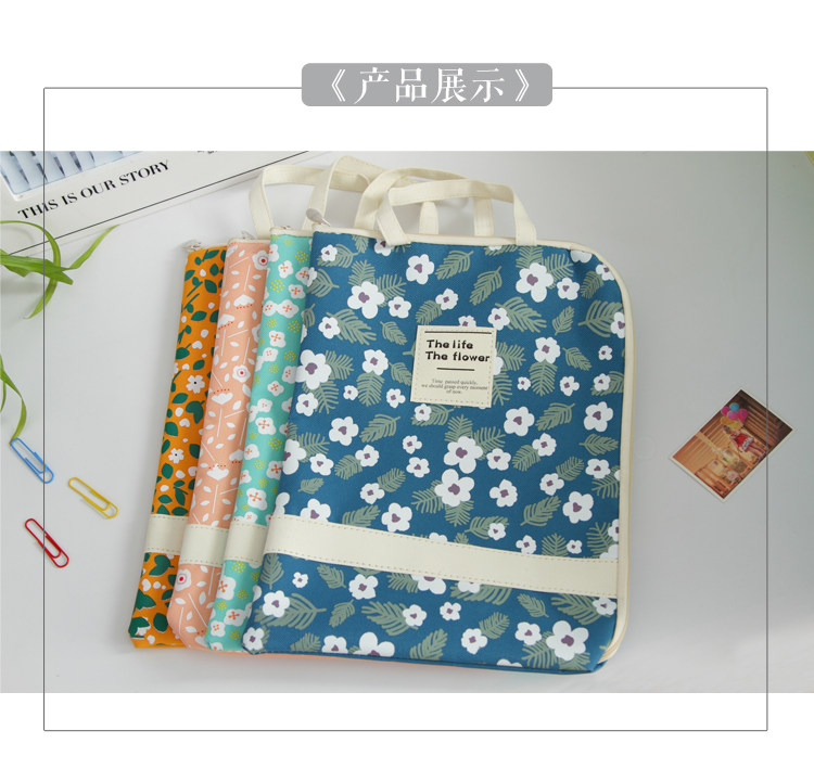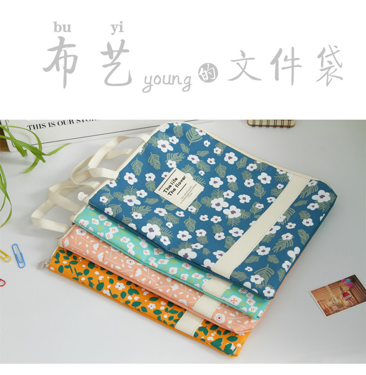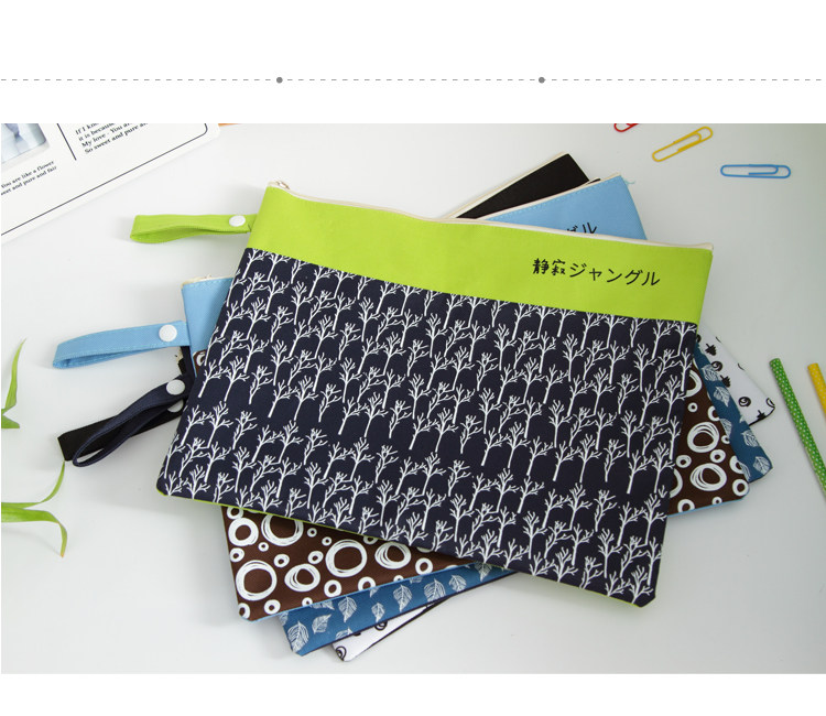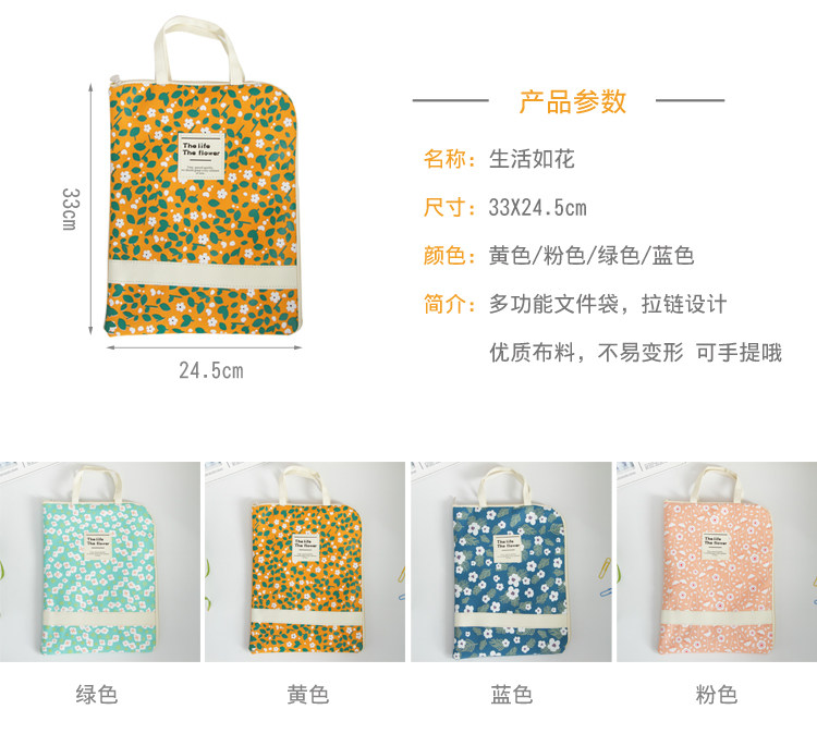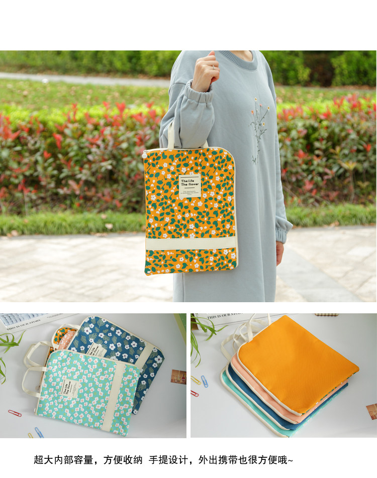 简约防水防尘文件袋帆布韩国小清新A4学生手提拉链袋资料袋收纳袋