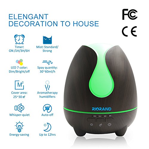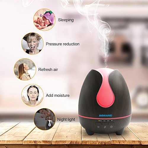 Novel shape:RIORAND The newest design in the autumn of 2017,Water droplets Style and 7 colors Soothing LED Lights with Wood Grain Finish