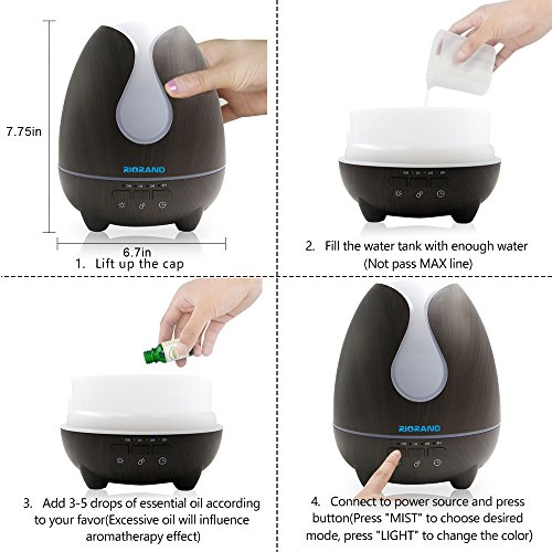 500ML Large Volume and Waterless Auto-Off Function: The diffuser can hold up to 500ml of water, works well in a large space. And when the water stored is off, the diffuser will automatically turn off in case you do not notice it, reliable and safe.