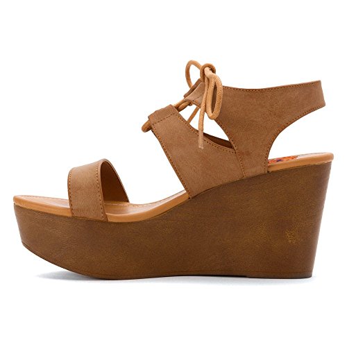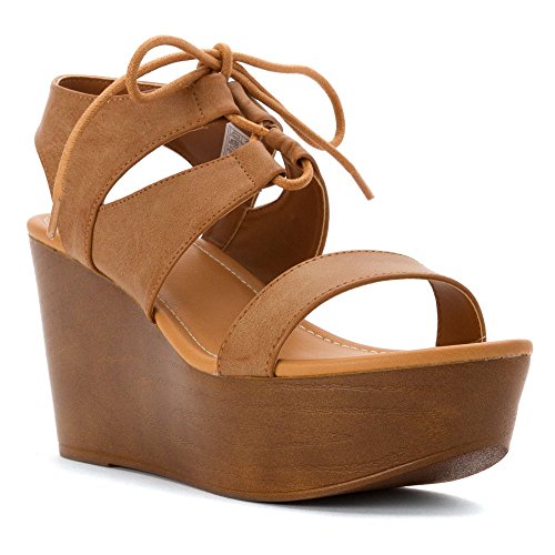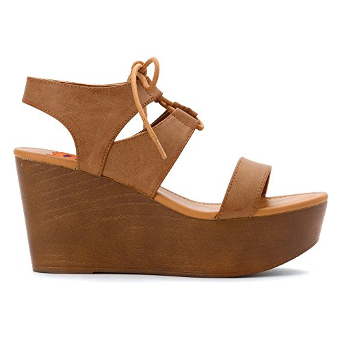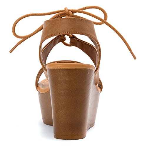Product DescriptionGet legs for days with this lace-up wedge sandal. features faux leather wrapped platform, open toe, and padded insole for comfort.0