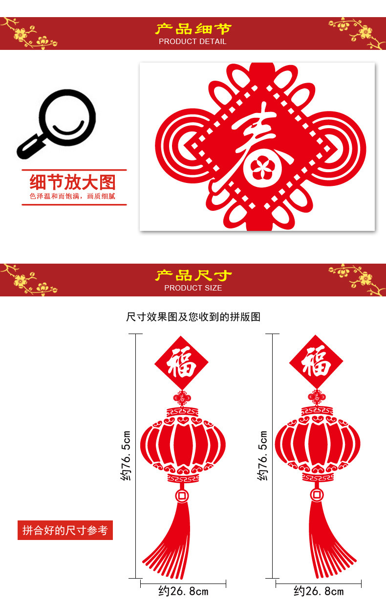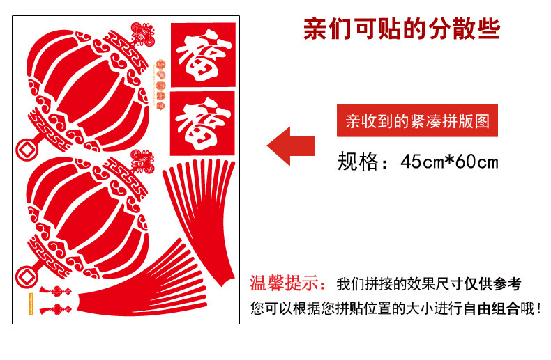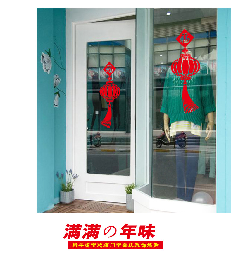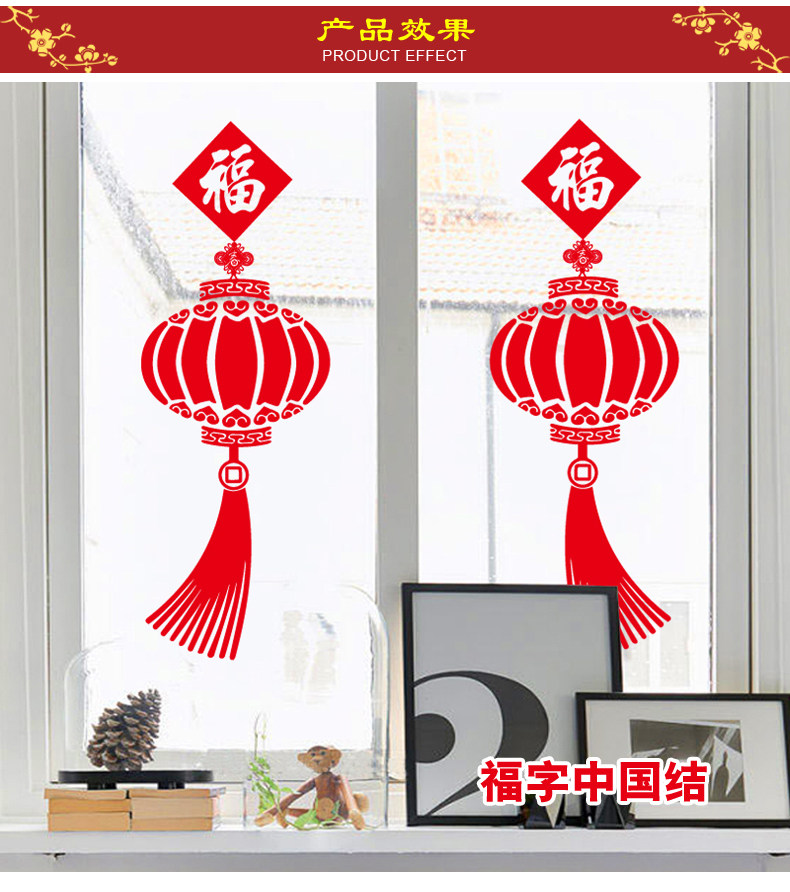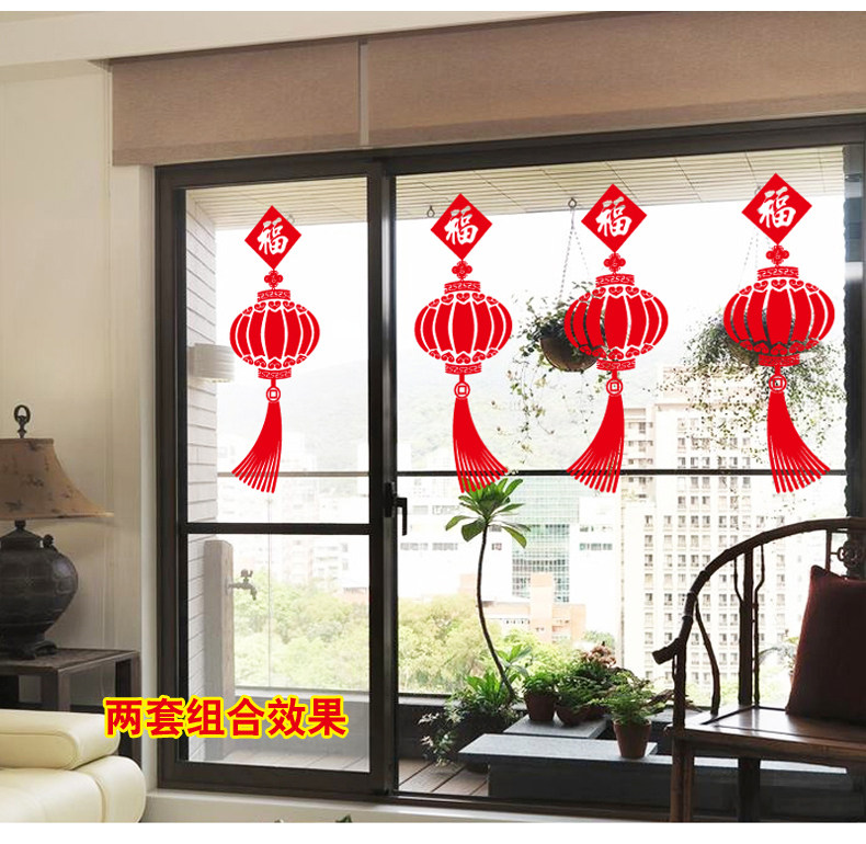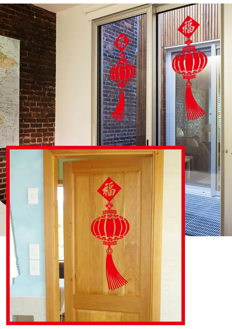 中国风春节新年装饰福字灯笼自粘墙纸贴画客厅卧室温馨门窗玻璃贴