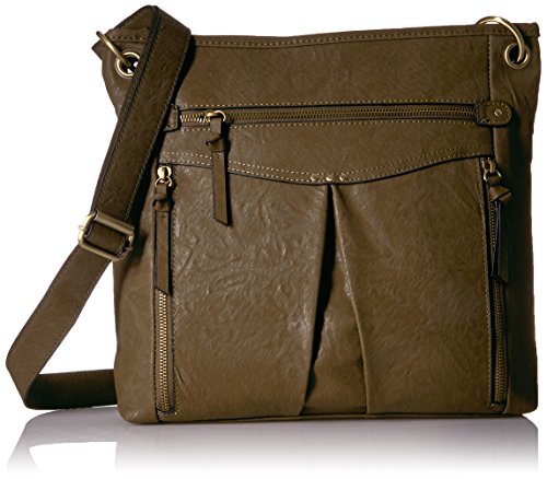 Bueno of California Multiple Zip Pocket Shoulder Bag in Dk Moss