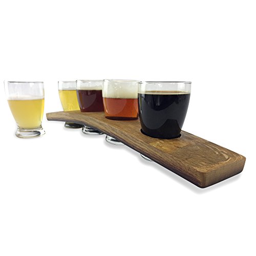 -. Brand : Shea Oak Works -. Color : Brown -. EAN : 0610877587483 -. Feature : HIGH QUALITY BEER GLASS SET: This cool barware is beautifully made out of repurposed wine barrels / REFINED ELEGANCE: Our beer flight carrier is made from a single oak wine barrel stave and come with a set of four 6oz Brussels Taster Glasses / PERFECT SIZE: The 6oz glasses are perfectly sized to serve your guest just the right amount to sample each micro-brew. / RUSTIC DESIGN: The wine barrel stave is harvested from a repurposed wine barrel and adds a rustic look to our flights. Surprise your friends with a selection of craft beers or a variety of mimosas served in a unique and classy flight. -. ProductGroup : Kitchen -. ProductTypeName : KITCHEN -. Title : Oak Barrel Stave Beer Flight with four 6oz Brussels tasting glasses -. UPC : 610877587483