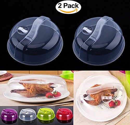 Microwave Plate Cover, 2 Pack (10.5'') - Crystal Clear, BPA Free, Premium Quality Microwave Food Dish Cover Plate Steam Vent Splatter Lid By XERUS