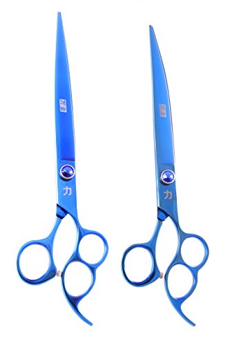ShearsDirect SET-PS-4N 2 Piece Japanese Stainless Steel Straight & Curved Shear, 8", Blue/Titanium