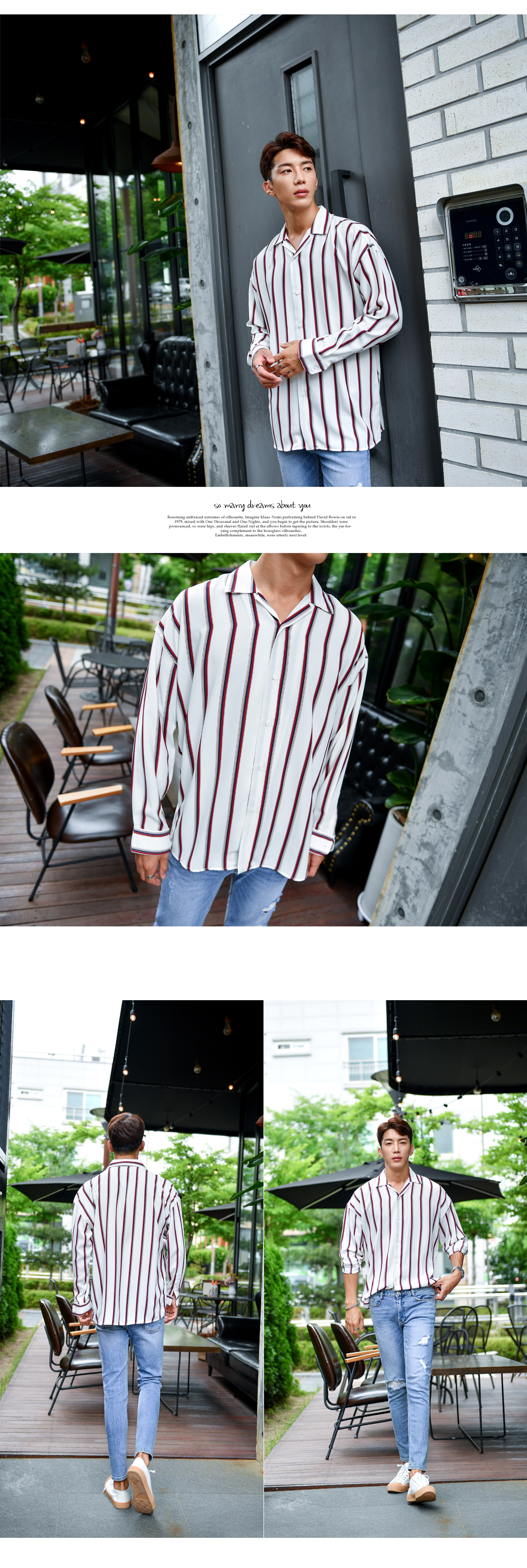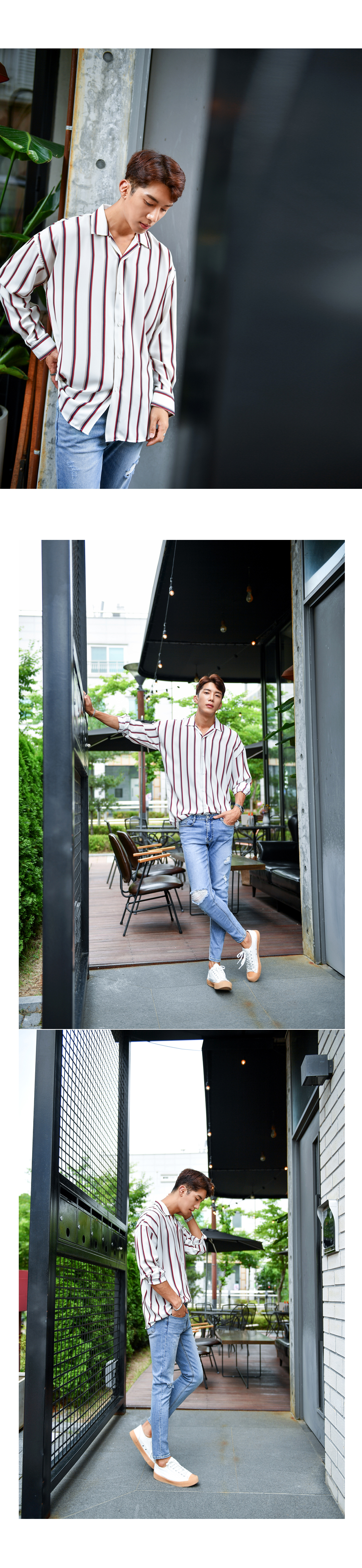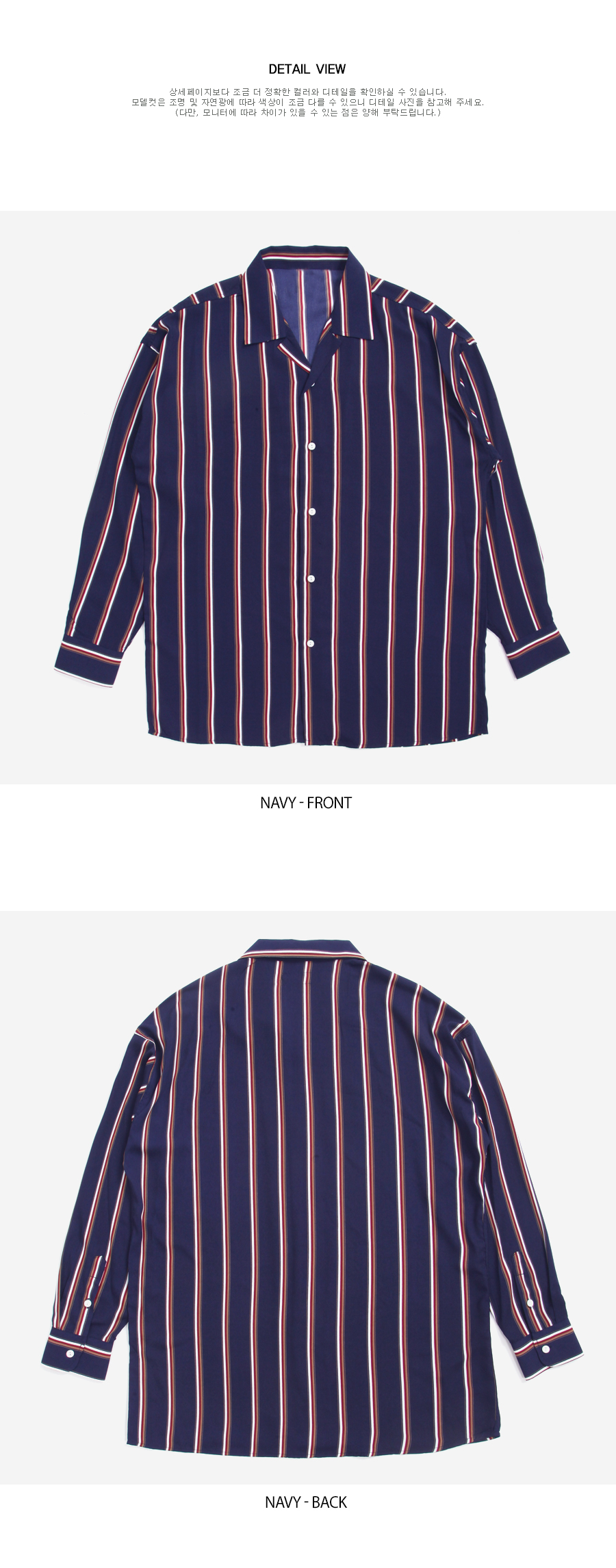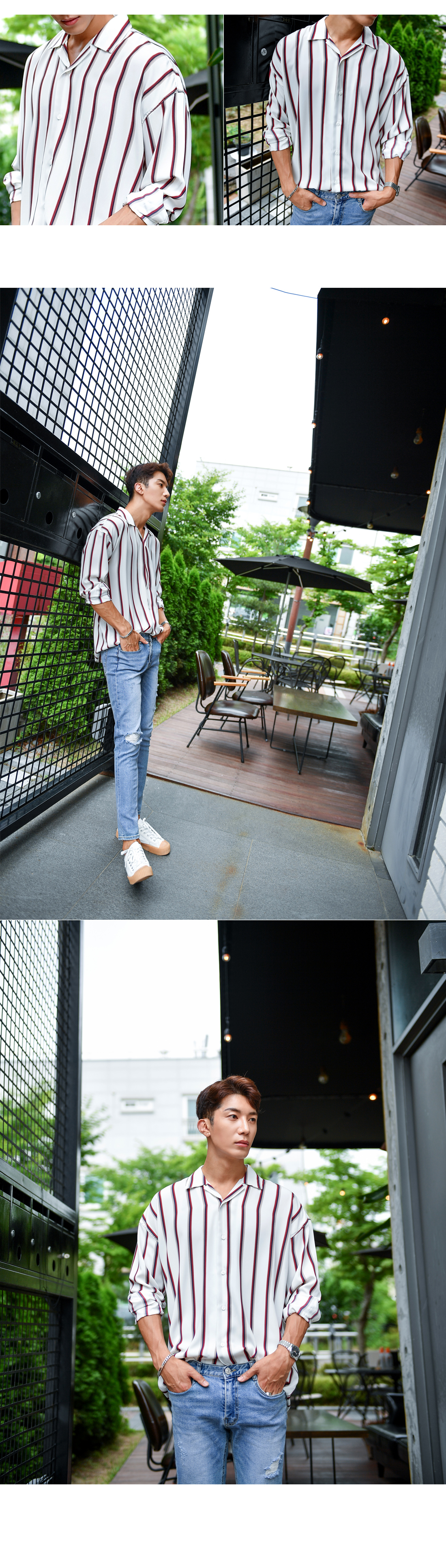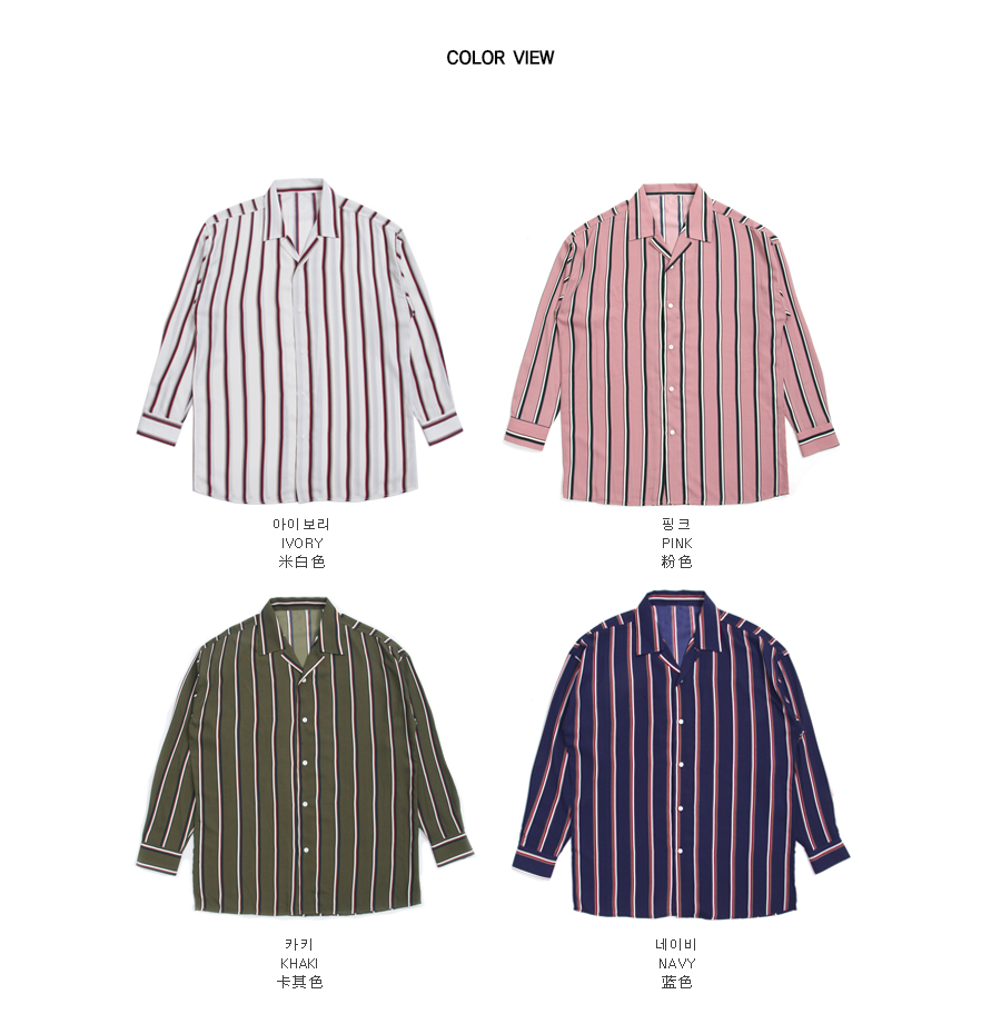 -찰랑한 소재감이 매력적인 오픈카라 스트라이프 셔츠입니다