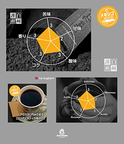 세계제4위의 커피 생산국,멕시코 출생의 소프트한 커피.쓴맛과 신맛의 밸런스가 좋고, 단맛도 풍부.편향이 없는 중성의 테이스트에 폭넓은 층의 팬을 가지는,마시기 쉬운 커피입니다.얕 #의 배전고 산뜻한 맛보게 마무리 있습니다.