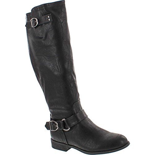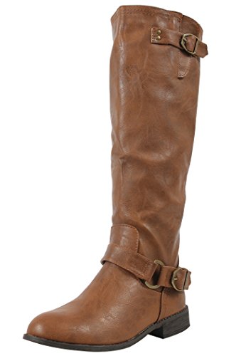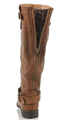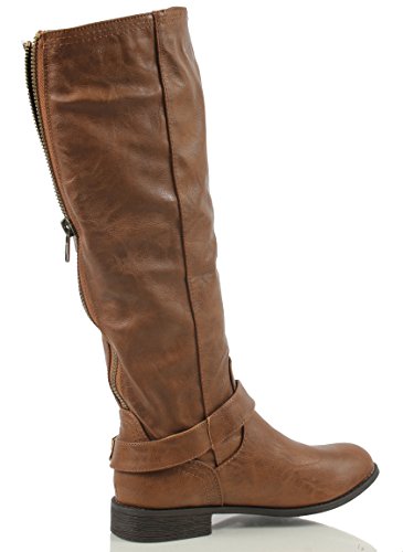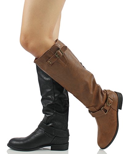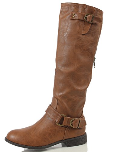 Wild Diva Oksana-77 Women's Faux Leather Buckle Back Zipper Riding Knee High Boot