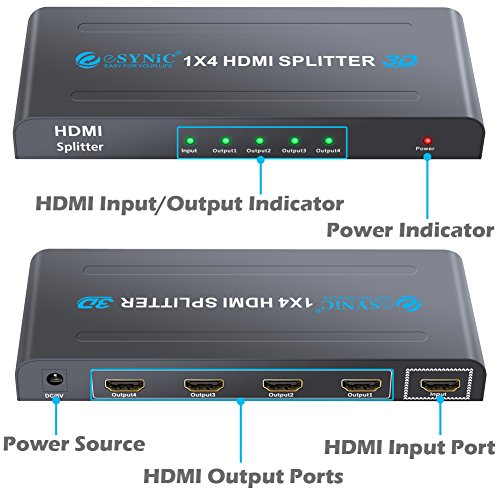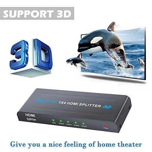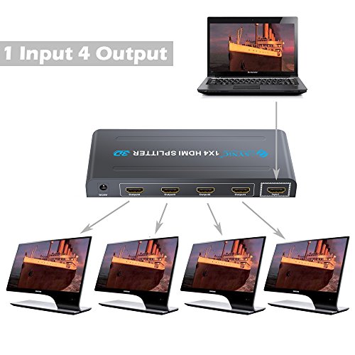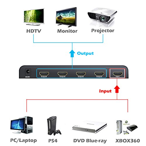 【4 Way HDMI Splitter】Full HD 1 Input to 4 Output HDMI Splitter, Split and Boost 1 HDMI Input Signal to 4 HDMI Output Signals Identical to the Input Signal, to 4 HD TV simultaneously.