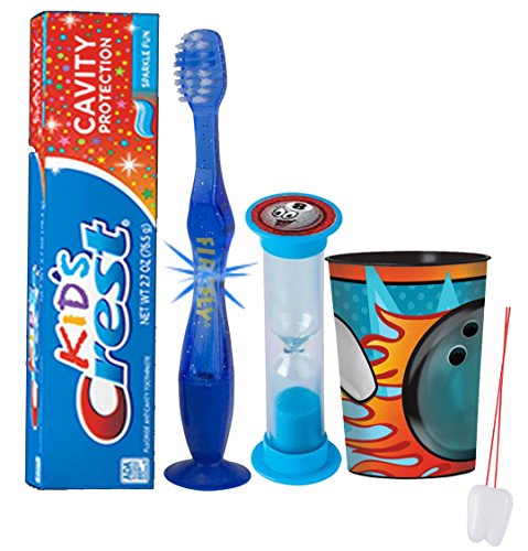 -. Feature : Turn something your kids have to do into something they want to do...Because when brushing is fun, it gets done! / (1) Firefly Youth Flashing Lights Suction Cup Toothbrush (Assorted Colors) (1) Kids Crest Cavity Protection Sparkle Fun Toothpaste, 2.7 oz / (1) Bowling Themed 16 Oz Mouthwash Rinse Cup! Doubles As Toothbrush Holder! / (1) Dentist Recommended 2 Minute Bowling Themed Brushing Timer (Assorted Styles) / Plus Bonus "Remember to Brush" Visual Aid Tooth Saver Necklace. Hang it in their bathroom or by their bed so they remember to keep their chompers sparkly fresh. You could also use these tooth charms to save one of your child's baby teeth.
