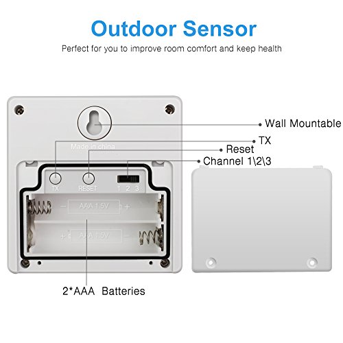 NOTE: The remote unit should NOT be placed under the direct sunlight.. sunlight will heat up the remote sensor which leads to higher temperature reading than the air temperature which is supposed to be measured. The remote sensor must be always placed upwards so that rain won't get inside the sensor through the vent holes on the bottom of the senor which functions to let the remote sensor detect the environmental temperature and humidity more precisely and quickly.