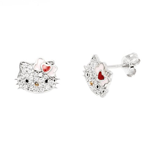 -. Title : Hello Kitty Sterling Silver Heart Bow Swarovski Crystal Stud Earrings