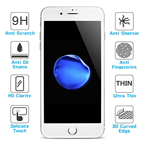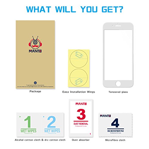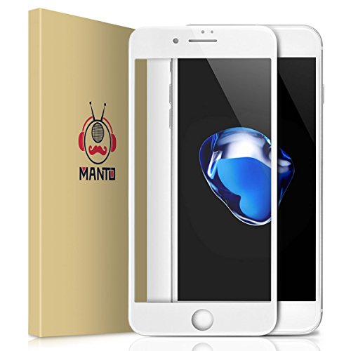 iPhone 8 7 Screen Protector, Manto Full Coverage Tempered Glass Screen Protector Film Edge to Edge Protection for Apple iPhone 7, iPhone 8, 4.7 Inch, White
