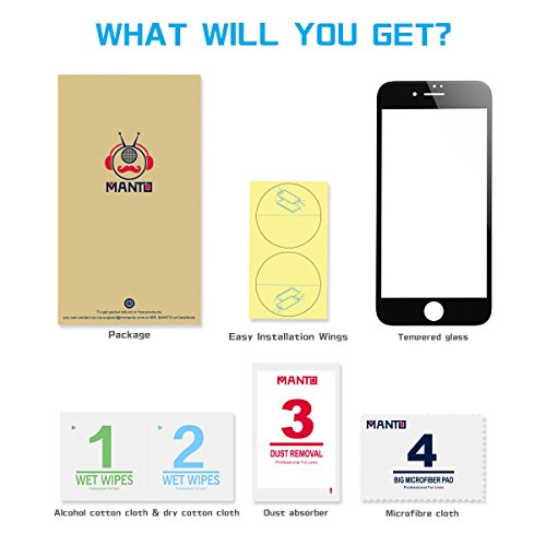 iPhone 7 8 Screen Protector, Manto Full Coverage Tempered Glass Screen Protector Film Edge to Edge Protection for Apple iPhone 7, iPhone 8, 4.7 Inch, Black