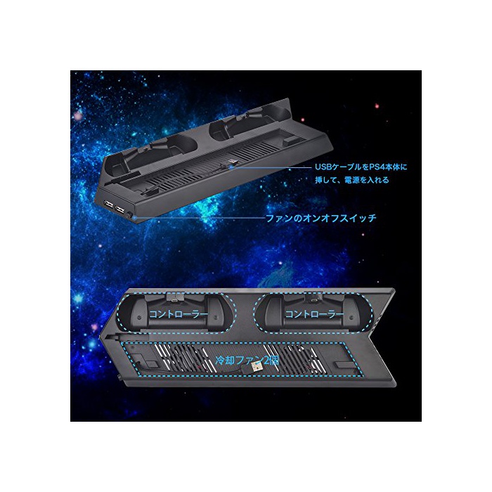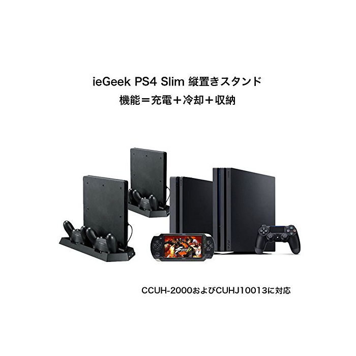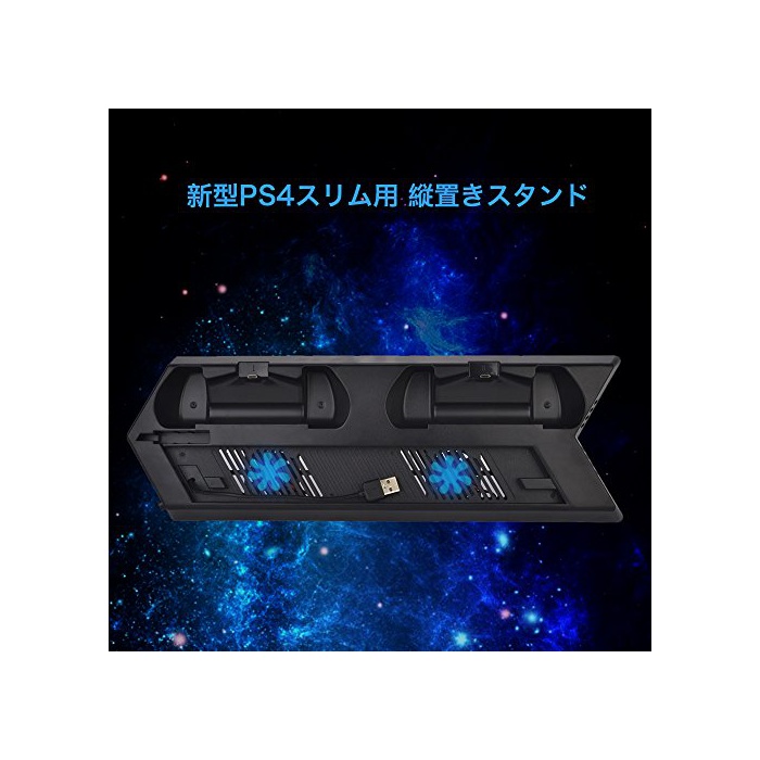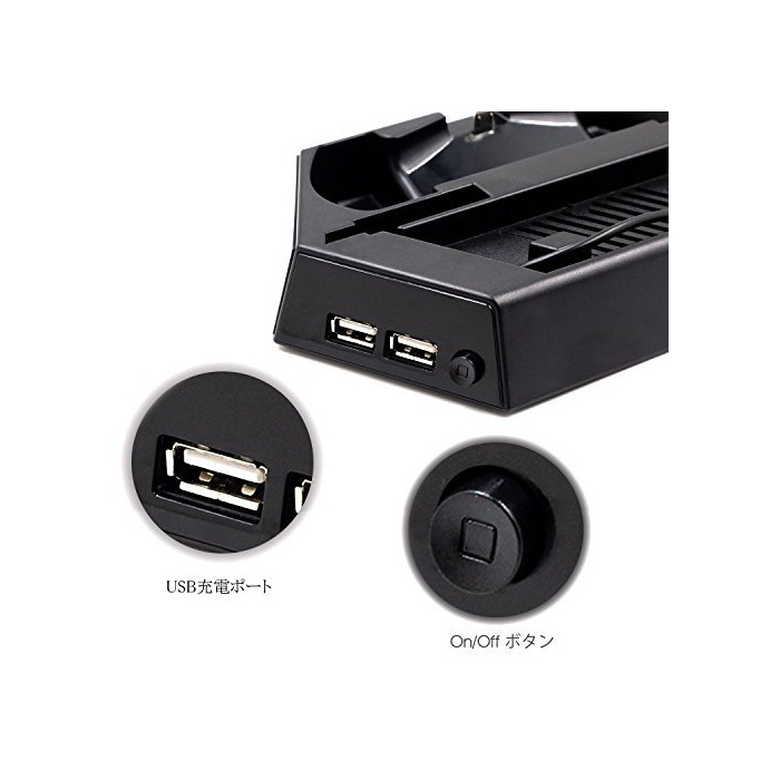 원본상품명: ieGeek PS4 Slim 置きスタンド プレイステション4 スリム スタンド コントロラ2台充電 USBハブ 2ポト 冷却ファン付き ブラック