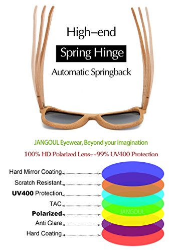 1.UNIQUE BAMBOO FRAMES - Crafted with 100% real bamboo frames, so every pair is different.Carbonized frames strengthen the material and enrich the color.