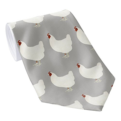Product Description Whimsical neck tie done in light gray with a pattern of white chickens. Customize to add any text you want to this fun tie. Great for anytime and makes a great gift idea to your favorite chicken lover. 0