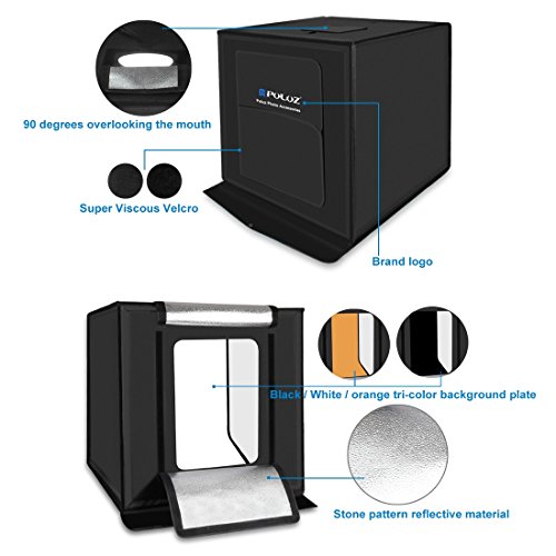 ?Best Photo Studio Shooting Tent For Novice Or Professional To Take Perfect Photo ? ?Professional Led Photography Light For Shooting Lower power consumption, longer for use, free maintenance cost led photography light for this photo studio shooting tent ? ?Can't make a perfect photos? You should take this Photo Studio Professional led light arrangement, shooting with the puluz photo studio shooting tent, not worry about taking high quality pictures for your online shop products anymore ? ?Don't have a DLSR? Never mind The photo studio shooting tent is suitable for smart phone, DLSR, camera shooting. You don't need to have a professional DLSR, It enables everyone to take awesome, studio-quality pictures with a smartphone using a simple setup ? ?3 color of Wrinkle And Water Resistant Backdrops(White, Orange, Black) Meet all your requirement for shooting various product ? ?Perfect shooting with Soft cloth Stick the soft cloth below the led light strip with the velcro, soften the light and make a perfect photo ? ? ? Photo Studio Specification Lumen: 5000LM Power Supply :Input AC 110-220V; Output: DC 12V Size:60*60*60cm / 24*24*24inch (Unfolded) Weight:4.76kg ? Photo Studio Package: Led light X2 strips Led power supply with brightness adapter X1 Soft cloth: X1 3 color photography backdrops : white, orange, black 0 |