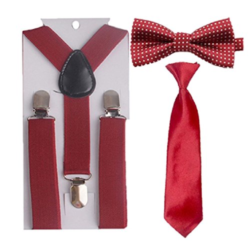 Binding : Apparel Product Description 100% New and High Quality! Material:Polyester Package include:Suspenders Bowtie TieSuitable for height: 100cm-130cm Available Size: Suspenders:Length about 65cmWide about 2.5cm Bowtie:Length about 10cmWide about 6cmTie:Length about 28cmWide about 6.5cm Main Color: 01# Wine Red Dotsplease be aware the color appearance can be vary due to different screen£¬display resolution and lights conditions. 0