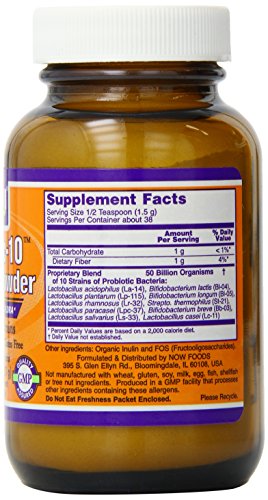 -. Binding : Health and Beauty -. Brand : Now Foods -. EAN : 0733739029270 -. Feature : Critical for healthy digestion, help maintain the integrity of the intestinal lining / Supports proper intestinal motility and participate in the detoxification process / Utilizes bacterial strains that have been clinically validated for their support of healthy immune system function -. IsAdultProduct : 0 -. Label : Now Foods -. LegalDisclaimer : This statement has not been evaluated by the Food and Drug Administration. This product is not intended to diagnose, treat, cure, or prevent any disease. -. Manufacturer : Now Foods -. MPN : 2927 -. NumberOfItems : 1 -. PackageQuantity : 1 -. PartNumber : 2927 -. ProductGroup : Health and Beauty -. ProductTypeName : HEALTH_PERSONAL_CARE -. PublicationDate : 2014-06-20 -. Publisher : Now Foods -. ReleaseDate : 2014-06-17 -. Size : 2 oz -. Studio : Now Foods -. Title : Now Foods Probiotic-10 50 Billion Powder, 2 Ounce -. UPC : 733739029270