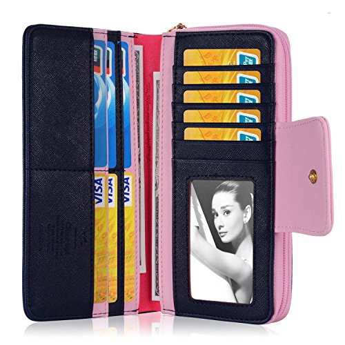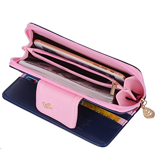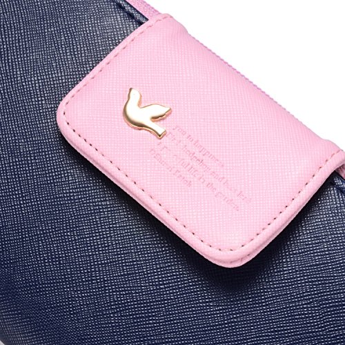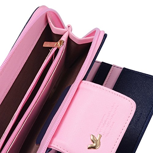 Leiwo Women's Multi-card Position Two Fold Long Zipper Purse Wallet Dark Blue