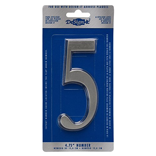 Whitehall Products DeSign-it Standard Plaque,4.75” Number 5 Brushed Nickel