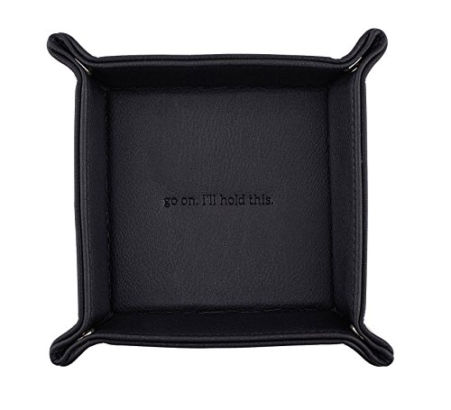 Santa Barbara Design Studio, Hold Everything Metallic Faux Leather Catchall Tray, 6.5" x 6.5", Gloss On, Black
