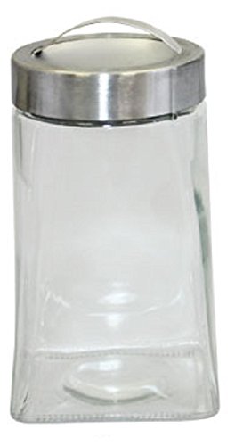 Gourmet Home Products Rounded Square Glass Storage Container Jar With Steel Lid and Handle, 46 oz, Clear